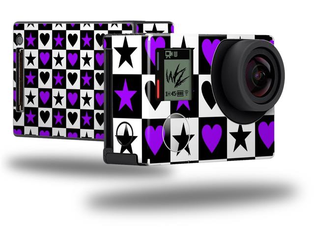 Purple Hearts And Stars - Decal Style Skin fits GoPro Hero 4 Black Camera (GOPRO SOLD SEPARATELY)