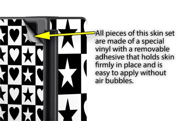 WraptoSkinz™ skins are superb photo quality designs and vibrant colors printed with special Eco-Friendly, fade resistant inks. Our skins are self-adhering flexible vinyl skins that helps prevent scratches. Made of composite, multi-layered commercial grade materials. The bottom layer is made with a special removable adhesive that is easily positioned and applied without air bubbles. We print your design on the bottom layer then bond a professional grade laminate over the entire skin adding a glossy protective finish.