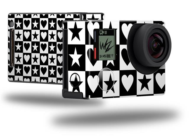 Hearts And Stars Black and White - Decal Style Skin fits GoPro Hero 4 Black Camera (GOPRO SOLD SEPARATELY)