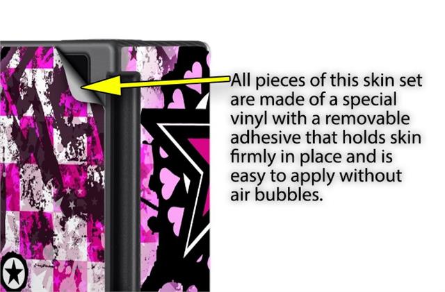 WraptoSkinz™ skins are superb photo quality designs and vibrant colors printed with special Eco-Friendly, fade resistant inks. Our skins are self-adhering flexible vinyl skins that helps prevent scratches. Made of composite, multi-layered commercial grade materials. The bottom layer is made with a special removable adhesive that is easily positioned and applied without air bubbles. We print your design on the bottom layer then bond a professional grade laminate over the entire skin adding a glossy protective finish.