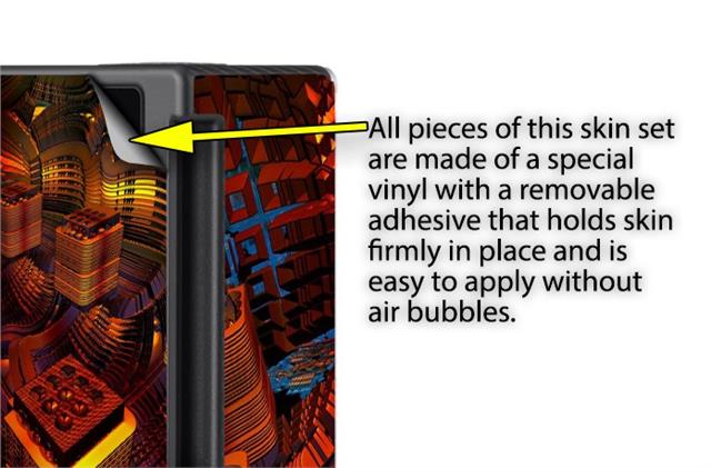 WraptoSkinz™ skins are superb photo quality designs and vibrant colors printed with special Eco-Friendly, fade resistant inks. Our skins are self-adhering flexible vinyl skins that helps prevent scratches. Made of composite, multi-layered commercial grade materials. The bottom layer is made with a special removable adhesive that is easily positioned and applied without air bubbles. We print your design on the bottom layer then bond a professional grade laminate over the entire skin adding a glossy protective finish.