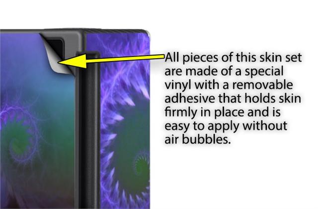 WraptoSkinz™ skins are superb photo quality designs and vibrant colors printed with special Eco-Friendly, fade resistant inks. Our skins are self-adhering flexible vinyl skins that helps prevent scratches. Made of composite, multi-layered commercial grade materials. The bottom layer is made with a special removable adhesive that is easily positioned and applied without air bubbles. We print your design on the bottom layer then bond a professional grade laminate over the entire skin adding a glossy protective finish.