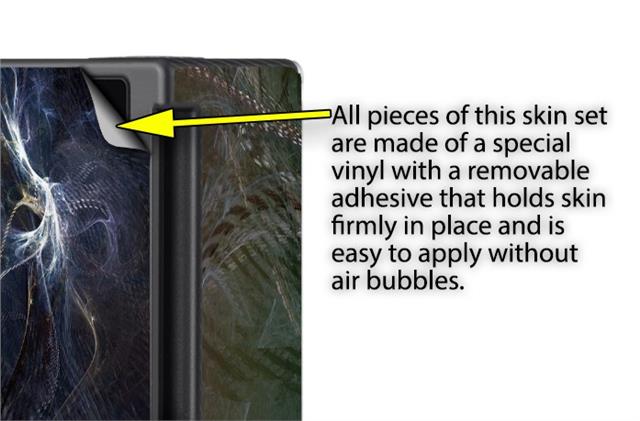 WraptoSkinz™ skins are superb photo quality designs and vibrant colors printed with special Eco-Friendly, fade resistant inks. Our skins are self-adhering flexible vinyl skins that helps prevent scratches. Made of composite, multi-layered commercial grade materials. The bottom layer is made with a special removable adhesive that is easily positioned and applied without air bubbles. We print your design on the bottom layer then bond a professional grade laminate over the entire skin adding a glossy protective finish.