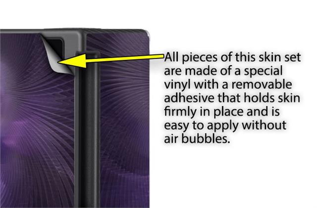 WraptoSkinz™ skins are superb photo quality designs and vibrant colors printed with special Eco-Friendly, fade resistant inks. Our skins are self-adhering flexible vinyl skins that helps prevent scratches. Made of composite, multi-layered commercial grade materials. The bottom layer is made with a special removable adhesive that is easily positioned and applied without air bubbles. We print your design on the bottom layer then bond a professional grade laminate over the entire skin adding a glossy protective finish.