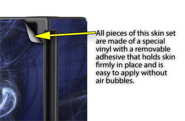 WraptoSkinz™ skins are superb photo quality designs and vibrant colors printed with special Eco-Friendly, fade resistant inks. Our skins are self-adhering flexible vinyl skins that helps prevent scratches. Made of composite, multi-layered commercial grade materials. The bottom layer is made with a special removable adhesive that is easily positioned and applied without air bubbles. We print your design on the bottom layer then bond a professional grade laminate over the entire skin adding a glossy protective finish.