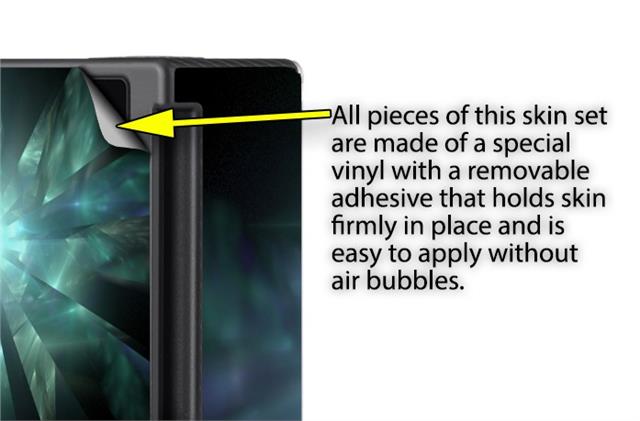 WraptoSkinz™ skins are superb photo quality designs and vibrant colors printed with special Eco-Friendly, fade resistant inks. Our skins are self-adhering flexible vinyl skins that helps prevent scratches. Made of composite, multi-layered commercial grade materials. The bottom layer is made with a special removable adhesive that is easily positioned and applied without air bubbles. We print your design on the bottom layer then bond a professional grade laminate over the entire skin adding a glossy protective finish.