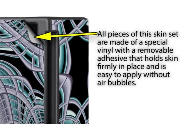 WraptoSkinz™ skins are superb photo quality designs and vibrant colors printed with special Eco-Friendly, fade resistant inks. Our skins are self-adhering flexible vinyl skins that helps prevent scratches. Made of composite, multi-layered commercial grade materials. The bottom layer is made with a special removable adhesive that is easily positioned and applied without air bubbles. We print your design on the bottom layer then bond a professional grade laminate over the entire skin adding a glossy protective finish.