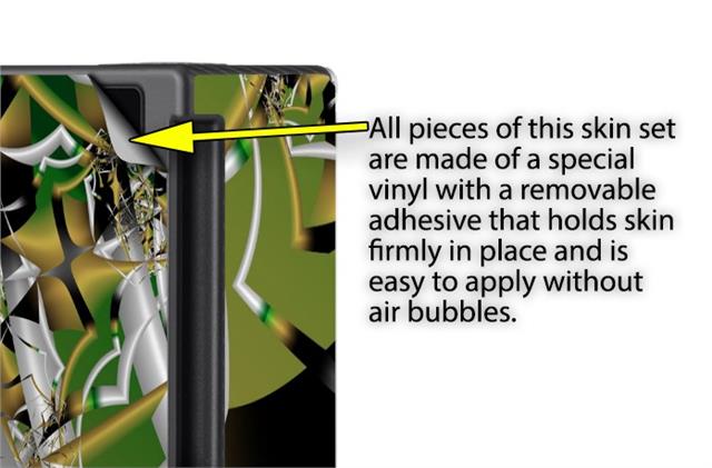 WraptoSkinz™ skins are superb photo quality designs and vibrant colors printed with special Eco-Friendly, fade resistant inks. Our skins are self-adhering flexible vinyl skins that helps prevent scratches. Made of composite, multi-layered commercial grade materials. The bottom layer is made with a special removable adhesive that is easily positioned and applied without air bubbles. We print your design on the bottom layer then bond a professional grade laminate over the entire skin adding a glossy protective finish.