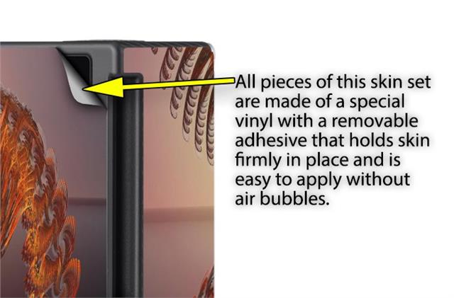 WraptoSkinz™ skins are superb photo quality designs and vibrant colors printed with special Eco-Friendly, fade resistant inks. Our skins are self-adhering flexible vinyl skins that helps prevent scratches. Made of composite, multi-layered commercial grade materials. The bottom layer is made with a special removable adhesive that is easily positioned and applied without air bubbles. We print your design on the bottom layer then bond a professional grade laminate over the entire skin adding a glossy protective finish.