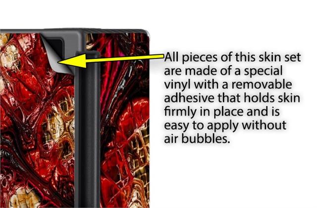 WraptoSkinz™ skins are superb photo quality designs and vibrant colors printed with special Eco-Friendly, fade resistant inks. Our skins are self-adhering flexible vinyl skins that helps prevent scratches. Made of composite, multi-layered commercial grade materials. The bottom layer is made with a special removable adhesive that is easily positioned and applied without air bubbles. We print your design on the bottom layer then bond a professional grade laminate over the entire skin adding a glossy protective finish.