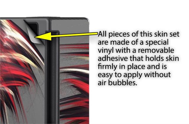 WraptoSkinz™ skins are superb photo quality designs and vibrant colors printed with special Eco-Friendly, fade resistant inks. Our skins are self-adhering flexible vinyl skins that helps prevent scratches. Made of composite, multi-layered commercial grade materials. The bottom layer is made with a special removable adhesive that is easily positioned and applied without air bubbles. We print your design on the bottom layer then bond a professional grade laminate over the entire skin adding a glossy protective finish.