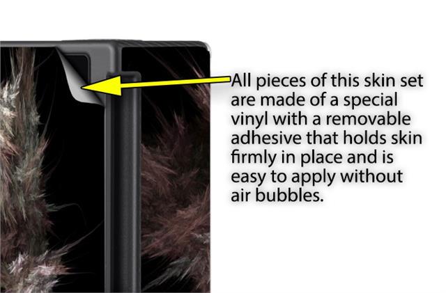 WraptoSkinz™ skins are superb photo quality designs and vibrant colors printed with special Eco-Friendly, fade resistant inks. Our skins are self-adhering flexible vinyl skins that helps prevent scratches. Made of composite, multi-layered commercial grade materials. The bottom layer is made with a special removable adhesive that is easily positioned and applied without air bubbles. We print your design on the bottom layer then bond a professional grade laminate over the entire skin adding a glossy protective finish.