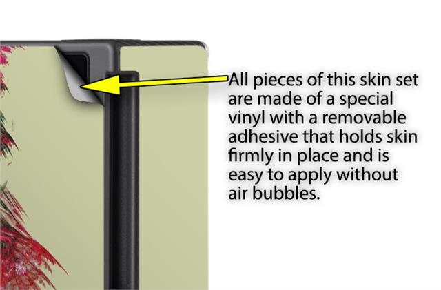 WraptoSkinz™ skins are superb photo quality designs and vibrant colors printed with special Eco-Friendly, fade resistant inks. Our skins are self-adhering flexible vinyl skins that helps prevent scratches. Made of composite, multi-layered commercial grade materials. The bottom layer is made with a special removable adhesive that is easily positioned and applied without air bubbles. We print your design on the bottom layer then bond a professional grade laminate over the entire skin adding a glossy protective finish.