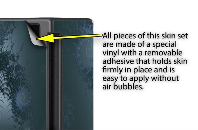 WraptoSkinz™ skins are superb photo quality designs and vibrant colors printed with special Eco-Friendly, fade resistant inks. Our skins are self-adhering flexible vinyl skins that helps prevent scratches. Made of composite, multi-layered commercial grade materials. The bottom layer is made with a special removable adhesive that is easily positioned and applied without air bubbles. We print your design on the bottom layer then bond a professional grade laminate over the entire skin adding a glossy protective finish.