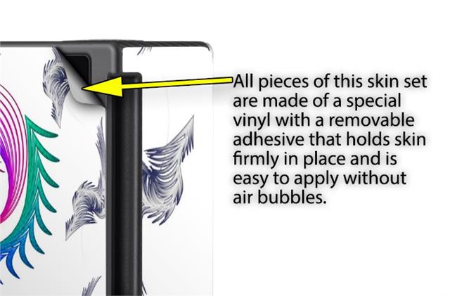 WraptoSkinz™ skins are superb photo quality designs and vibrant colors printed with special Eco-Friendly, fade resistant inks. Our skins are self-adhering flexible vinyl skins that helps prevent scratches. Made of composite, multi-layered commercial grade materials. The bottom layer is made with a special removable adhesive that is easily positioned and applied without air bubbles. We print your design on the bottom layer then bond a professional grade laminate over the entire skin adding a glossy protective finish.