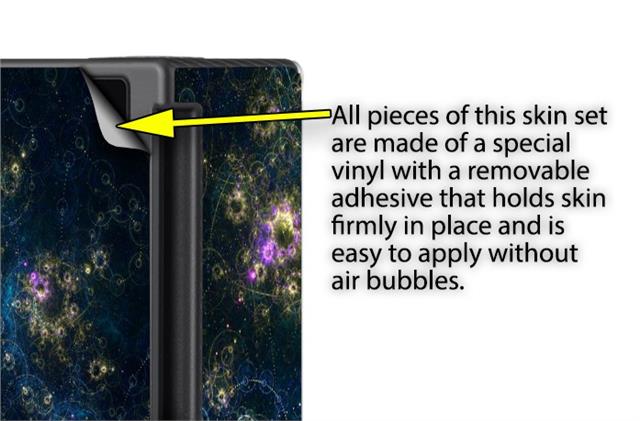 WraptoSkinz™ skins are superb photo quality designs and vibrant colors printed with special Eco-Friendly, fade resistant inks. Our skins are self-adhering flexible vinyl skins that helps prevent scratches. Made of composite, multi-layered commercial grade materials. The bottom layer is made with a special removable adhesive that is easily positioned and applied without air bubbles. We print your design on the bottom layer then bond a professional grade laminate over the entire skin adding a glossy protective finish.