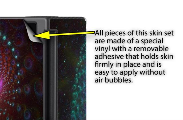 WraptoSkinz™ skins are superb photo quality designs and vibrant colors printed with special Eco-Friendly, fade resistant inks. Our skins are self-adhering flexible vinyl skins that helps prevent scratches. Made of composite, multi-layered commercial grade materials. The bottom layer is made with a special removable adhesive that is easily positioned and applied without air bubbles. We print your design on the bottom layer then bond a professional grade laminate over the entire skin adding a glossy protective finish.