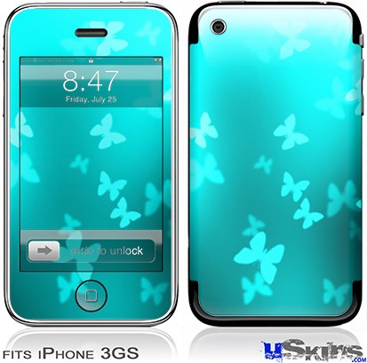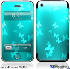 iPhone 3GS Skin - Bokeh Butterflies Neon Teal