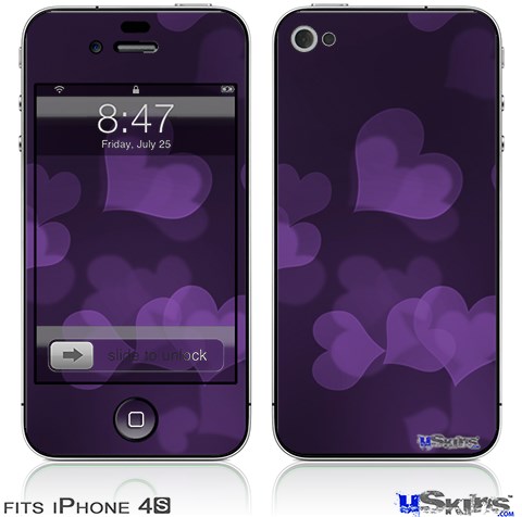 iPhone 4S Decal Style Vinyl Skin - Bokeh Hearts Purple