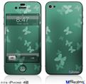 iPhone 4S Decal Style Vinyl Skin - Bokeh Butterflies Neon Teal