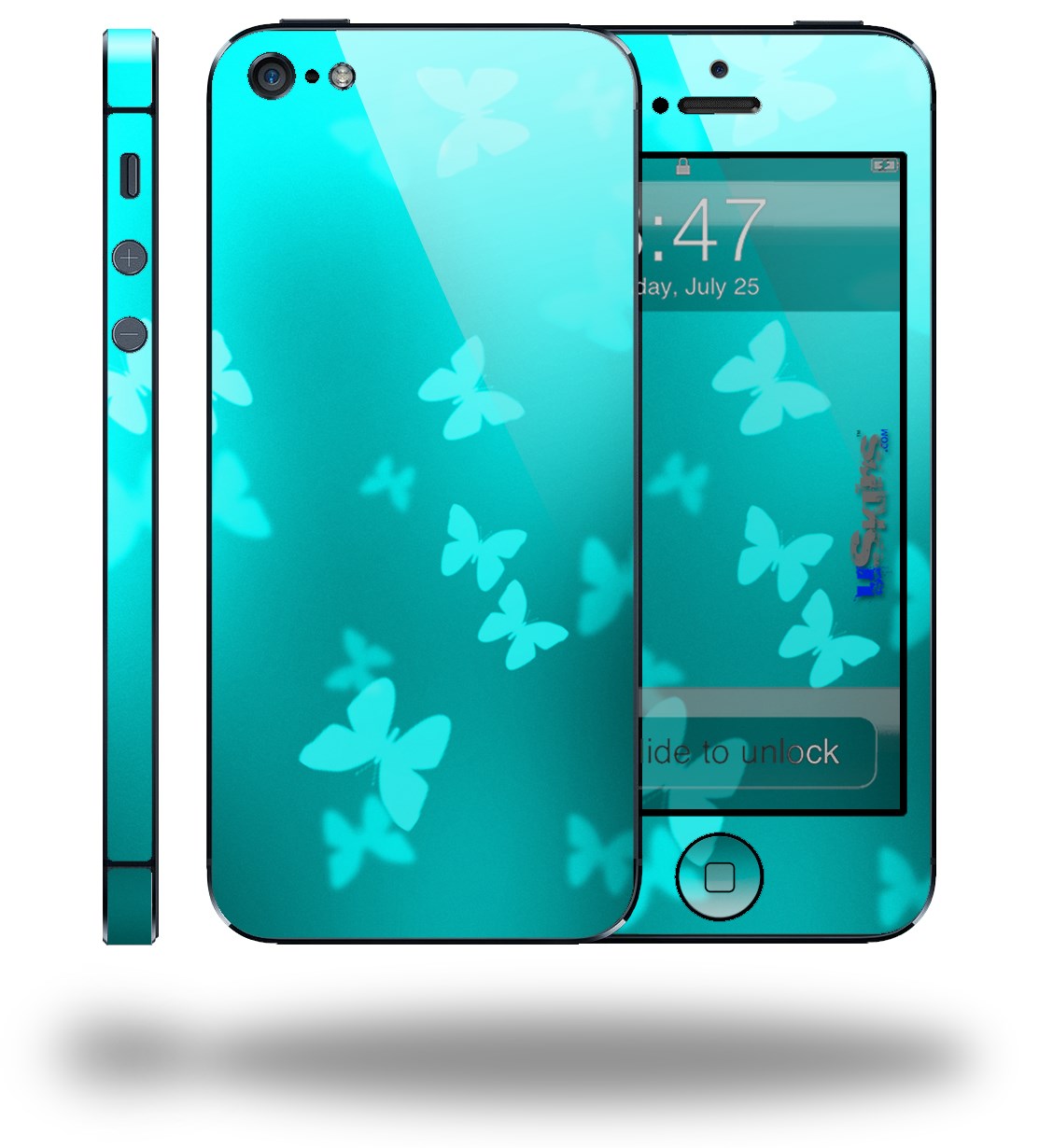 Bokeh Butterflies Neon Teal - Decal Style Vinyl Skin (fits Apple Original iPhone 5, NOT the iPhone 5C or 5S)