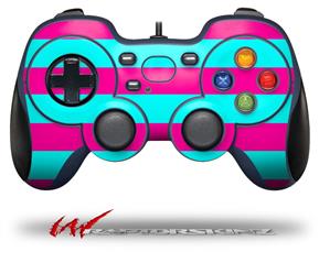 Psycho Stripes Neon Teal and Hot Pink - Decal Style Skin fits Logitech F310 Gamepad Controller (CONTROLLER SOLD SEPARATELY)