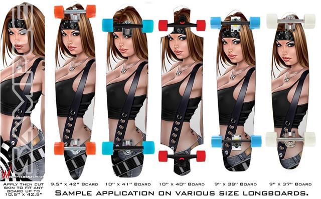 Our longboard skins are made so that one size fits boards up to 10” wide x 42” long. This means after applying the skin it you will trimming to fit you’re the shape of your board with a sharp utility knife.