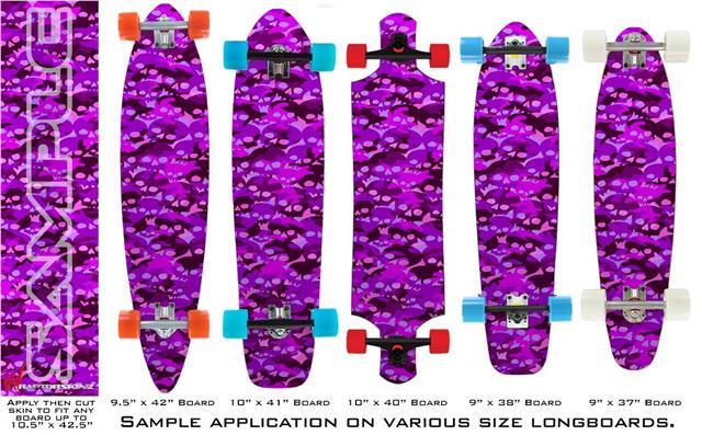 Our longboard skins are made so that one size fits boards up to 10” wide x 42” long. This means after applying the skin it you will trimming to fit you’re the shape of your board with a sharp utility knife.