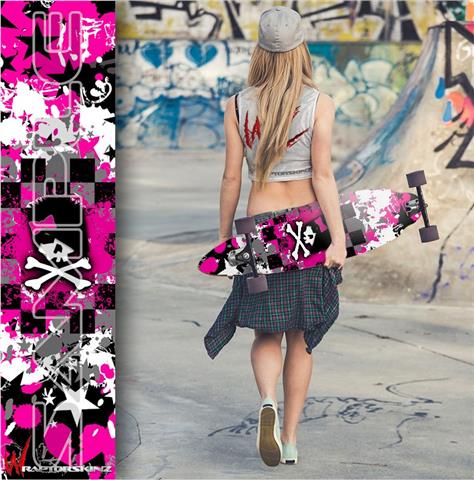 Scene Girl Skull - Decal Style Vinyl Wrap Skin fits Longboard Skateboards up to 10"x42" (LONGBOARD NOT INCLUDED)
