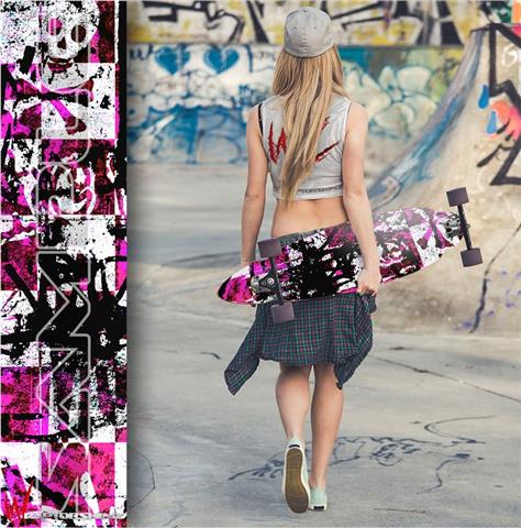 Checker Graffiti Pink - Decal Style Vinyl Wrap Skin fits Longboard Skateboards up to 10"x42" (LONGBOARD NOT INCLUDED)