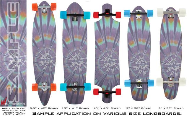 Our longboard skins are made so that one size fits boards up to 10” wide x 42” long. This means after applying the skin it you will trimming to fit you’re the shape of your board with a sharp utility knife.