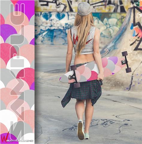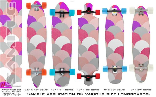 Our longboard skins are made so that one size fits boards up to 10” wide x 42” long. This means after applying the skin it you will trimming to fit you’re the shape of your board with a sharp utility knife.