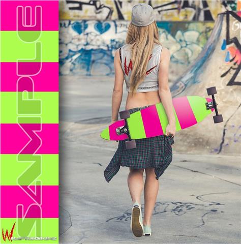 Psycho Stripes Neon Green and Hot Pink - Decal Style Vinyl Wrap Skin fits Longboard Skateboards up to 10"x42" (LONGBOARD NOT INCLUDED)