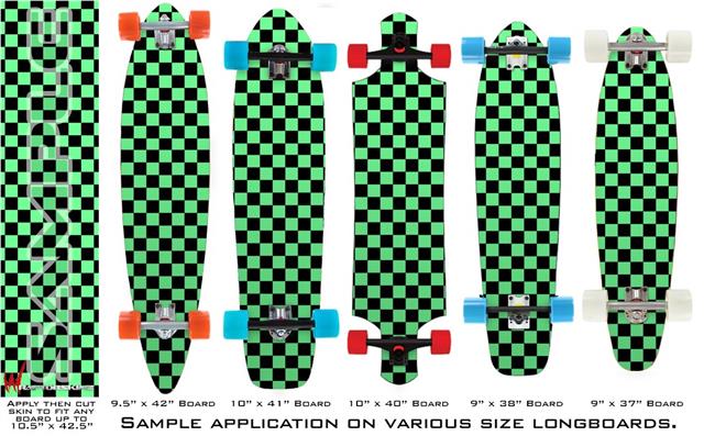 Checkers Green - Decal Style Vinyl Wrap Skin fits Longboard Skateboards up to 10"x42" (LONGBOARD NOT INCLUDED)