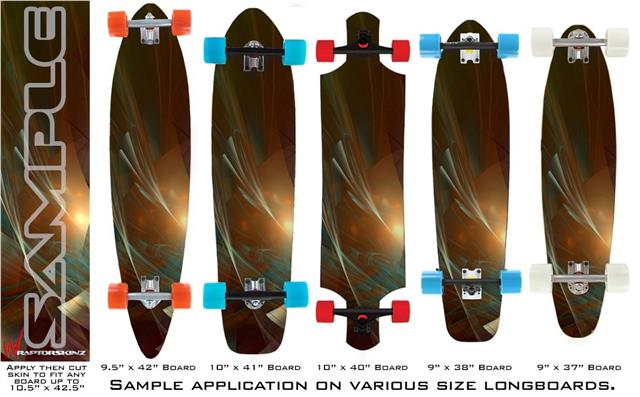 Our longboard skins are made so that one size fits boards up to 10” wide x 42” long. This means after applying the skin it you will trimming to fit you’re the shape of your board with a sharp utility knife.