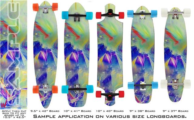 Our longboard skins are made so that one size fits boards up to 10” wide x 42” long. This means after applying the skin it you will trimming to fit you’re the shape of your board with a sharp utility knife.