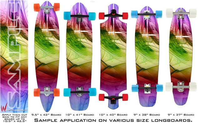 Our longboard skins are made so that one size fits boards up to 10” wide x 42” long. This means after applying the skin it you will trimming to fit you’re the shape of your board with a sharp utility knife.