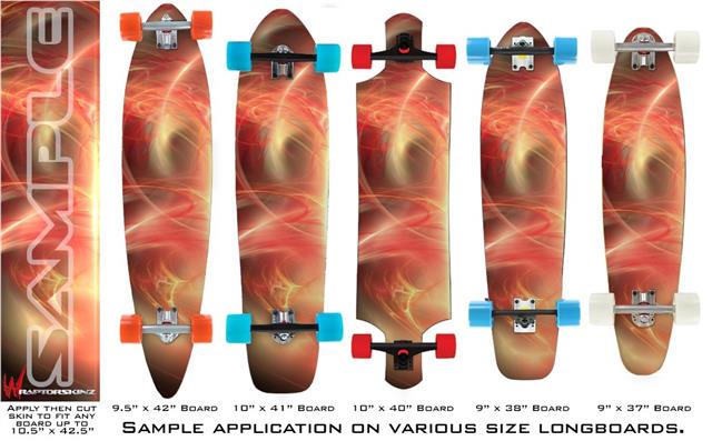 Our longboard skins are made so that one size fits boards up to 10” wide x 42” long. This means after applying the skin it you will trimming to fit you’re the shape of your board with a sharp utility knife.