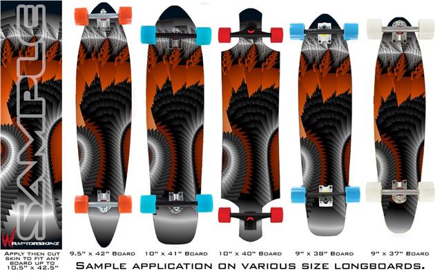 Our longboard skins are made so that one size fits boards up to 10” wide x 42” long. This means after applying the skin it you will trimming to fit you’re the shape of your board with a sharp utility knife.