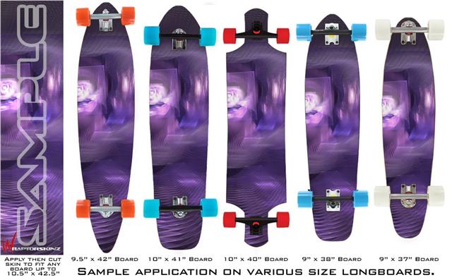 Our longboard skins are made so that one size fits boards up to 10” wide x 42” long. This means after applying the skin it you will trimming to fit you’re the shape of your board with a sharp utility knife.