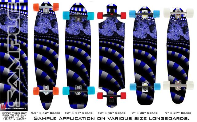Our longboard skins are made so that one size fits boards up to 10” wide x 42” long. This means after applying the skin it you will trimming to fit you’re the shape of your board with a sharp utility knife.