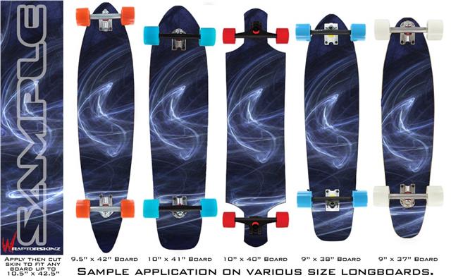 Our longboard skins are made so that one size fits boards up to 10” wide x 42” long. This means after applying the skin it you will trimming to fit you’re the shape of your board with a sharp utility knife.