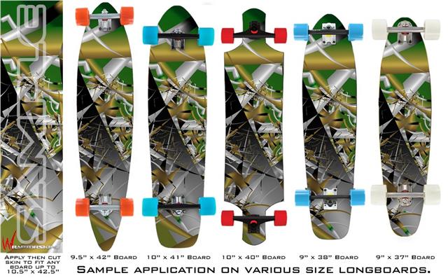 Our longboard skins are made so that one size fits boards up to 10” wide x 42” long. This means after applying the skin it you will trimming to fit you’re the shape of your board with a sharp utility knife.