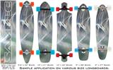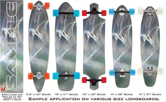 Our longboard skins are made so that one size fits boards up to 10” wide x 42” long. This means after applying the skin it you will trimming to fit you’re the shape of your board with a sharp utility knife.