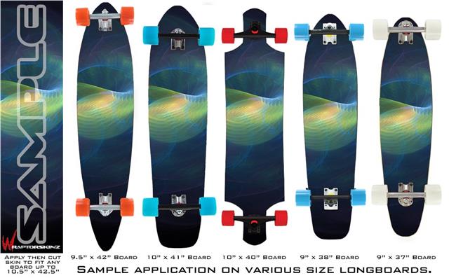 Our longboard skins are made so that one size fits boards up to 10” wide x 42” long. This means after applying the skin it you will trimming to fit you’re the shape of your board with a sharp utility knife.