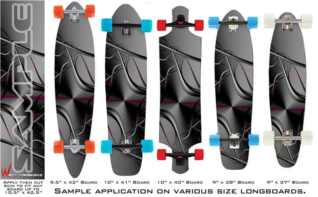 Our longboard skins are made so that one size fits boards up to 10” wide x 42” long. This means after applying the skin it you will trimming to fit you’re the shape of your board with a sharp utility knife.