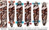 Our longboard skins are made so that one size fits boards up to 10” wide x 42” long. This means after applying the skin it you will trimming to fit you’re the shape of your board with a sharp utility knife.