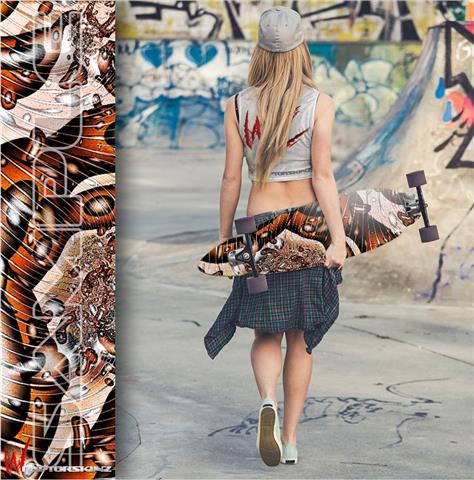 Professional 5 year indoor/outdoor vinyl with air release adhesive allowing easy application and no air bubbles. Printed with the latest UV protected inks to resist fading for up to 3 year in direct sunlight. Laminated to add a high gloss finish and added protection. Our board skins look amazing, printed in high resolution for unbeatable color and razor sharp designs.