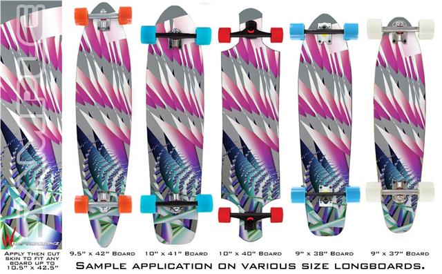 Our longboard skins are made so that one size fits boards up to 10” wide x 42” long. This means after applying the skin it you will trimming to fit you’re the shape of your board with a sharp utility knife.
