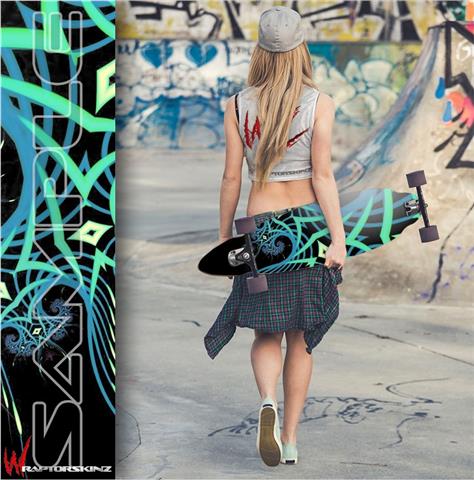 Professional 5 year indoor/outdoor vinyl with air release adhesive allowing easy application and no air bubbles. Printed with the latest UV protected inks to resist fading for up to 3 year in direct sunlight. Laminated to add a high gloss finish and added protection. Our board skins look amazing, printed in high resolution for unbeatable color and razor sharp designs.
